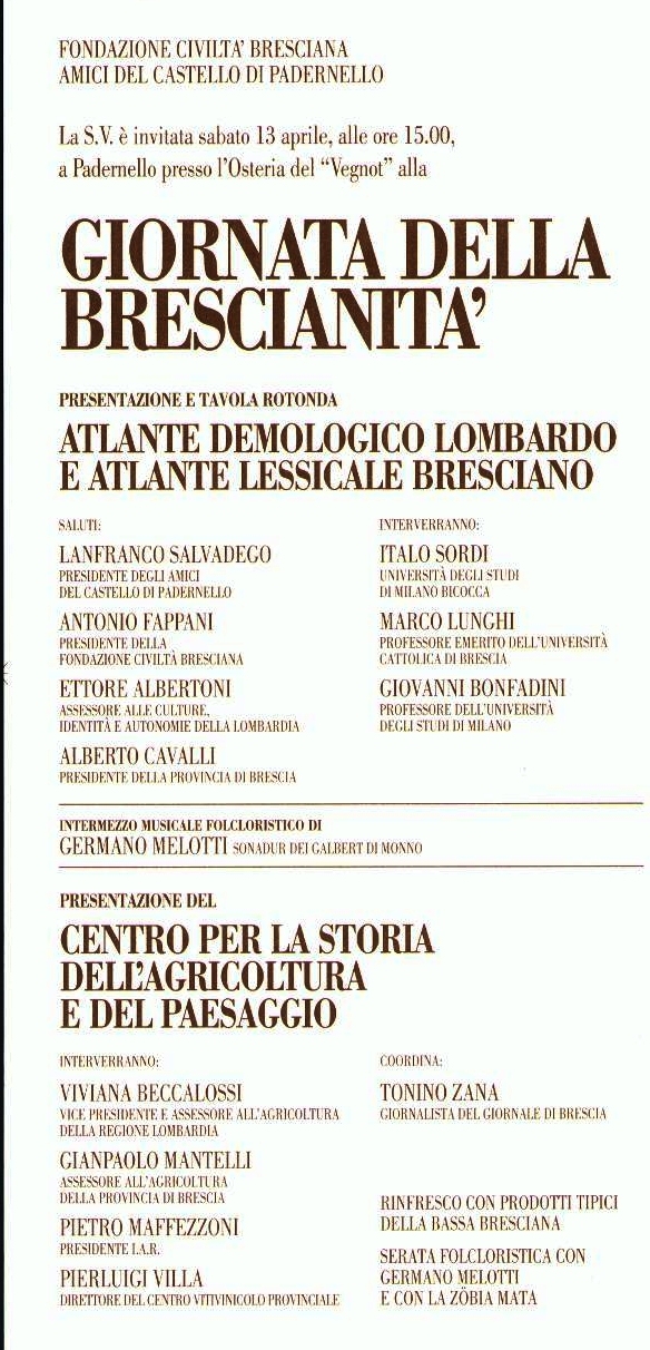 AtlanteDemologico>> Presentazione dell' Atlante Lessicale Bresciano